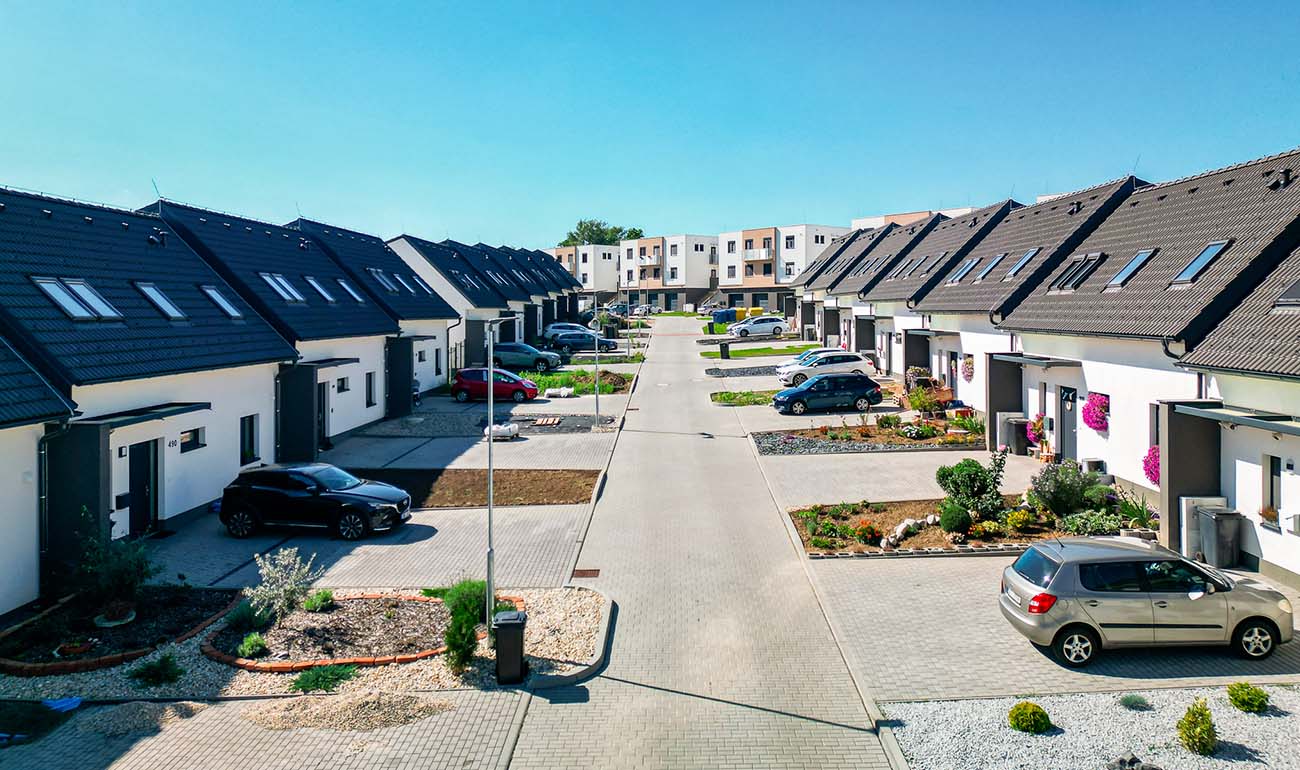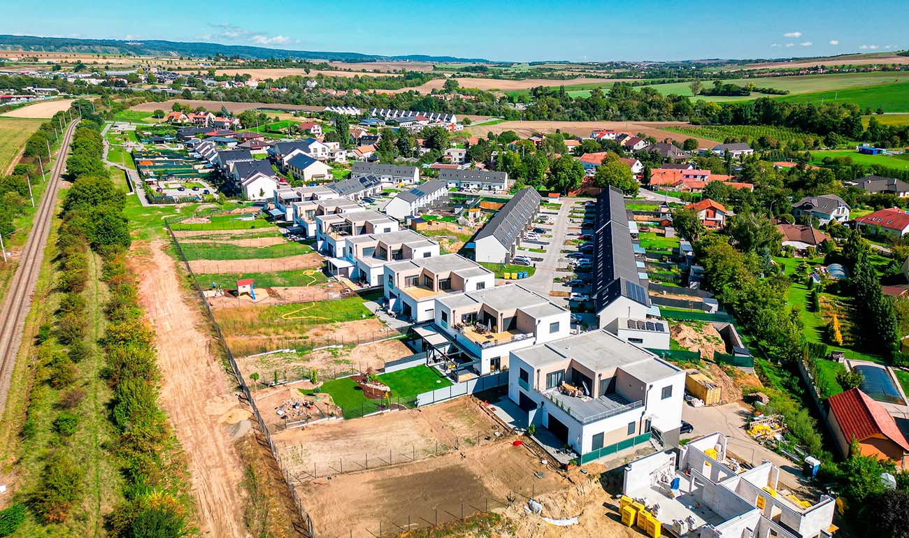 Realizace výstavby 10 samostatně stojících vila domů s celkem 24 bytovými jednotkami probíhá od 9/2022, současné době se dokončují hrubé stavby, z části již byly zkolaudovány inženýrské sítě a komunikace. Předpoklad dokončení a kolaudace je stanoven nejpozději do 31.12.2024.